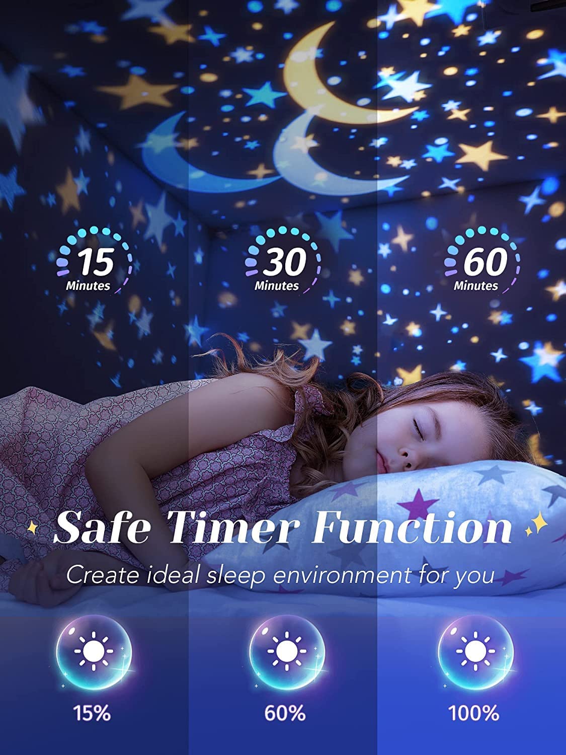 With 5 colour-changing light modes, kids can fill their room with soothing blues, playful pinks, or a rainbow of rotating hues, setting the perfect mood for rest or play.